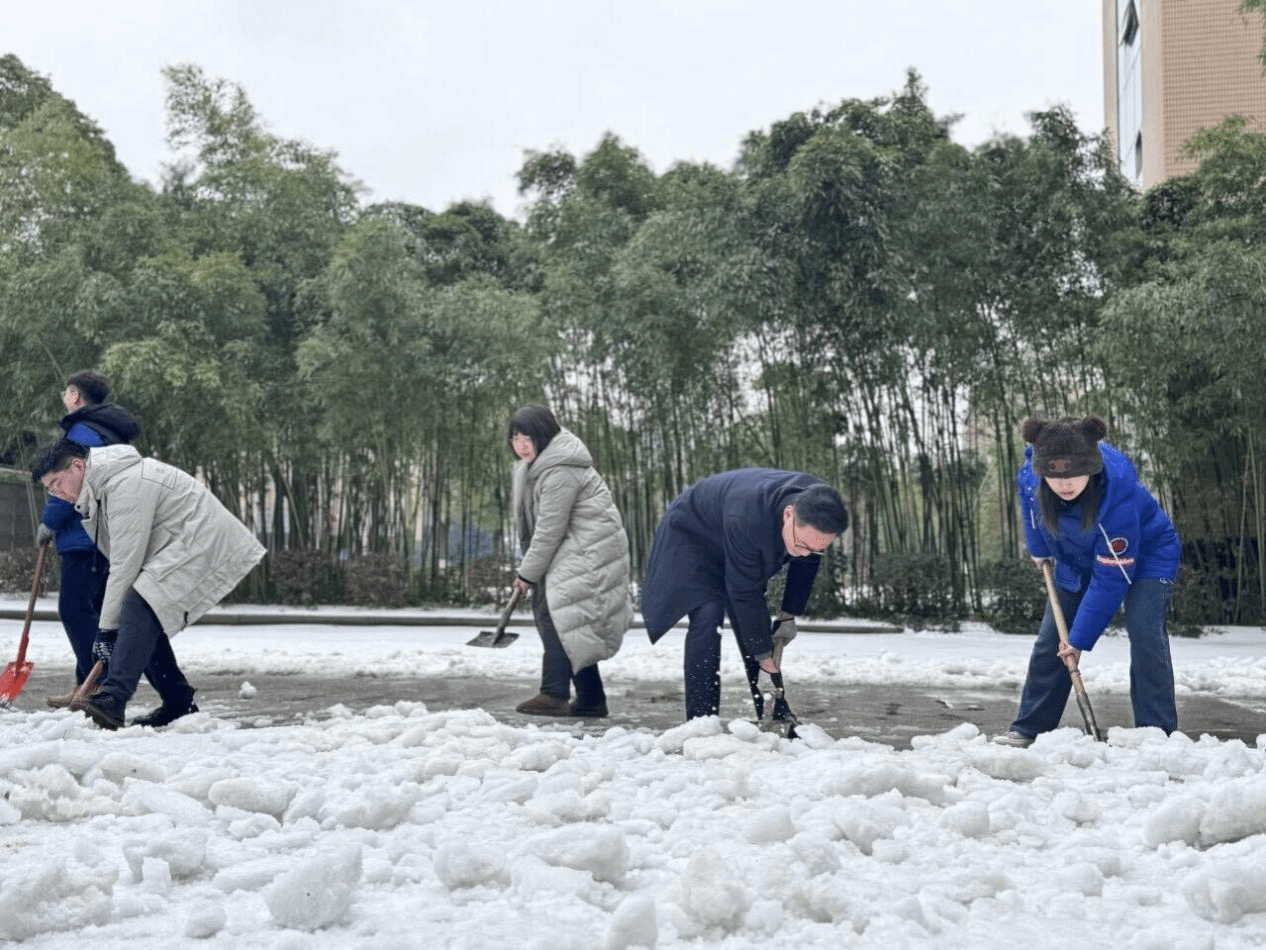 下一步,学院党委将统筹组织党员突击队、全院师生员工积极参与到教学楼、办公楼、宿舍楼、校园街道等公共区域扫雪除冰活动中去,保障道路畅通,确保师生出行平安。