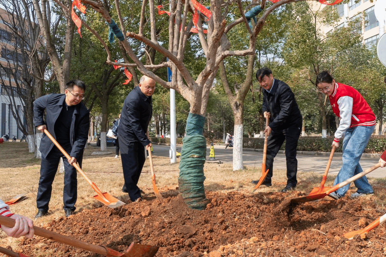 党委书记徐雁冰、校长倪红卫等全体校领导、职能部门负责人与法经学院师生代表100余人一同种下象征民族团结的石榴树。