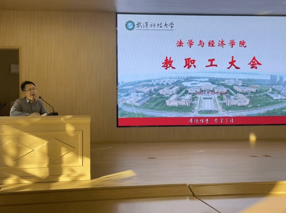 武科大网讯(通讯员 杜逸涵1031下午,全院教职工大会在学院模拟法庭举行学院领导班子成员及全体教职工参加会议院党委副书记彭晓峰主持会议。
