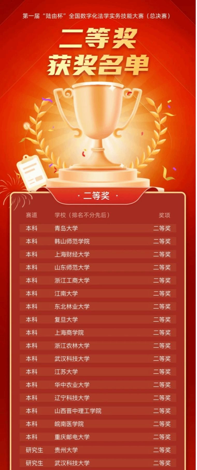 法学专业学子在指导老师梁东新、常晓云的带领下,由赴上海财经大学参加第一届“陆由杯”全国数字化法学实务技能大赛决赛,赛事于24日落下帷幕。我校2022级法学专业本科生陈思琪、董文靓、周余晋、李丹娜组成的本科生队和2023级法律硕士胡琴、程曦、蔡炎灼、张扶摇组成的研究生队在比赛中沉着应对,均斩获二等奖。米粒av