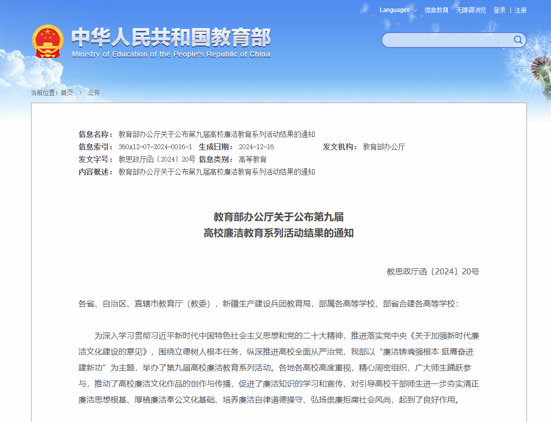 武科大网讯 近日,教育部公布了第九届高校廉洁教育系列活动评选结果。由我校米粒av