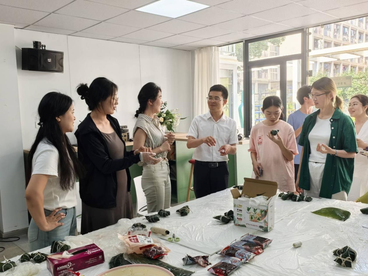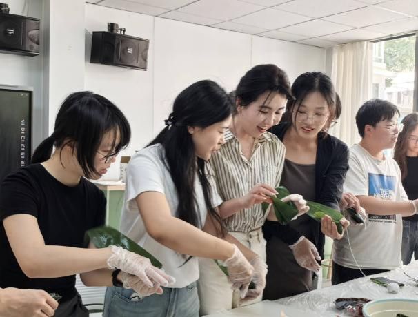 活动当天,师生们早早来到“一站式”学生社区,热火朝天地布置活动场地,粽叶、糯米、红枣、豆沙等食材摆放在长桌上,空气中弥漫着淡淡的清香,让人不由期待起即将开始的包粽子体验。