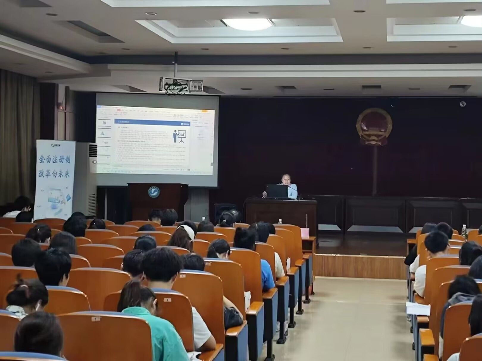 针对大学生创业需要,瞿丽萍着重为学生讲解了“注册制”背景和这一制度的改革。“在全面实行股票发行注册制的今天,作为一名大学生,在勇敢创业的同时,也要学习金融知识,关心市场变化,这样才能在创业的路上少走弯路。”瞿丽萍介绍道。