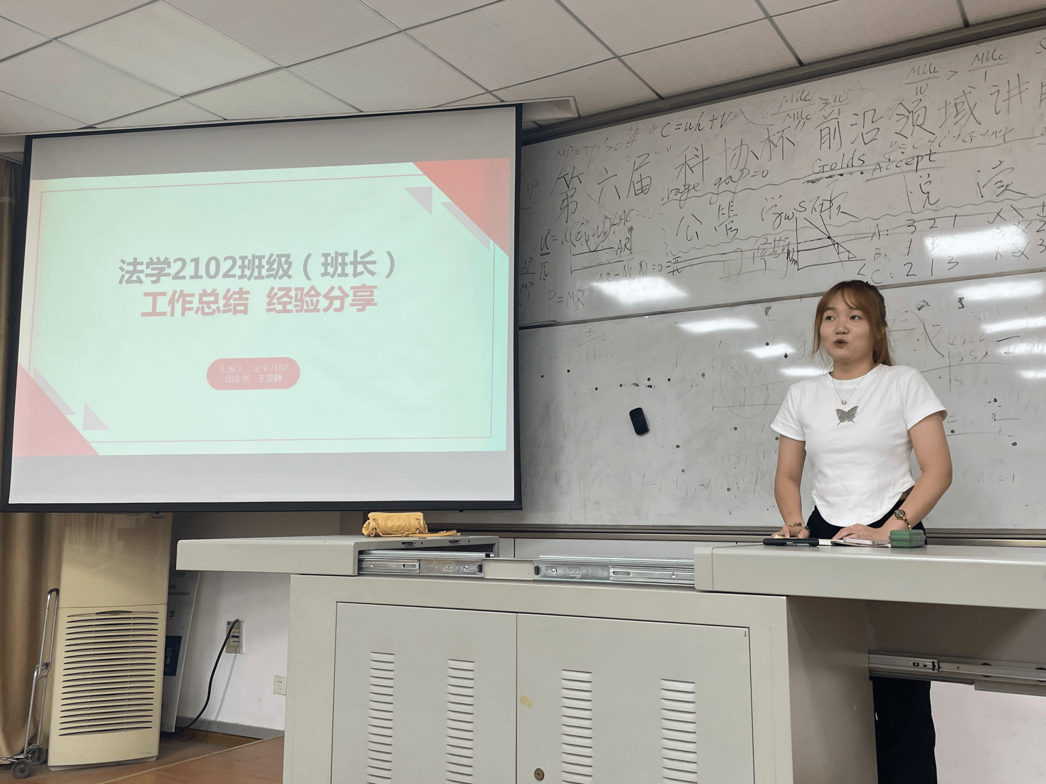 王雯静首先进行工作经验分享,以自身经历现身说法,向2022级各班班长分享班级组织管理经验与方法。