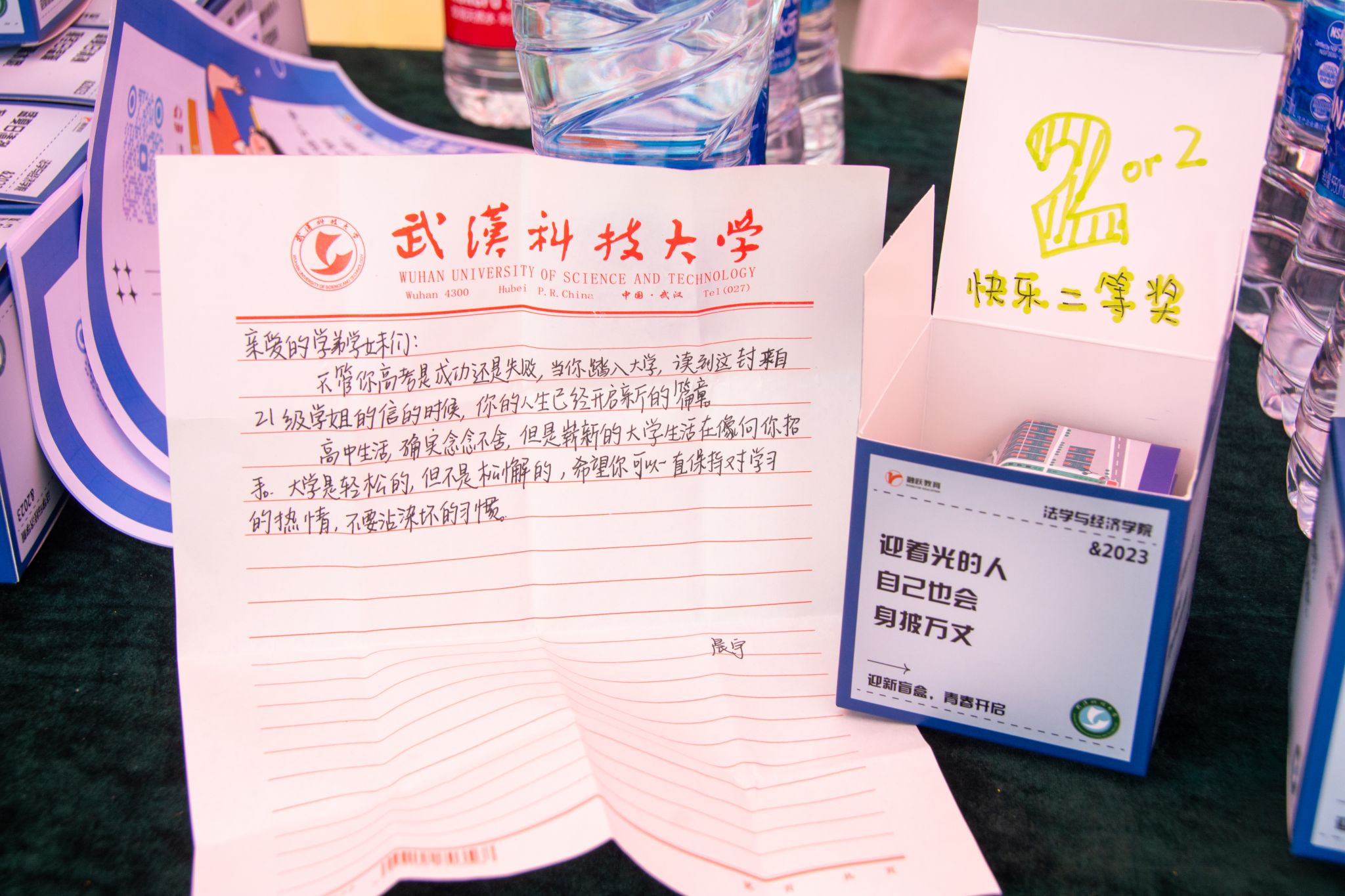 经贸2302班新生郑小宇抽取到的盲盒中这样写道。在认真看完这封信件之后,郑小宇感叹道:“这封信的字字句句间都透露着对我们新生的关怀和希望,这是作为即将经历四年大学生活的我们收到的最暖心的礼物。”同时她也表示,在今后的大学生活中,她会时常记起学姐的话,走好接下来的每一步。