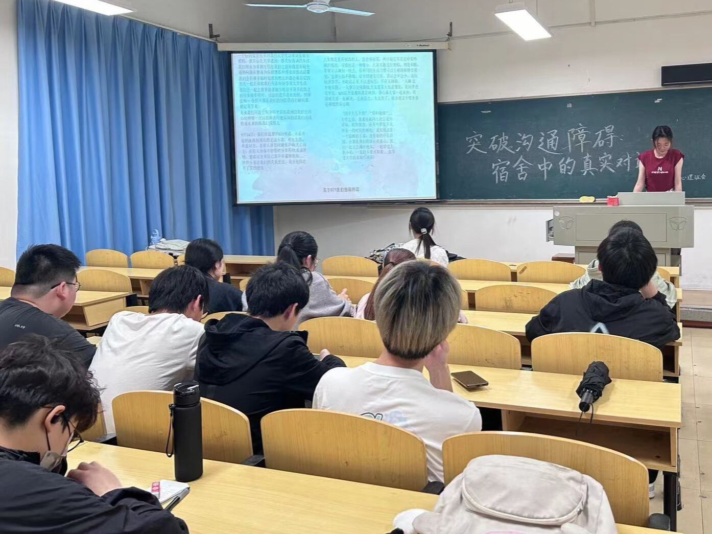 (通讯员程想 申月萍)春季学期是寝室矛盾集中爆发的时间段,为引导同学们正视在宿舍中常见的沟通障碍,鼓励同学们积极寻求真实对话和问题解决,学院于3月26日至-4月7日组织全体本硕新生以班级为单位召开心理班会,班会主题为“突破沟通障碍:宿舍中的真实对话”,同学们踊跃参加,反响热烈。