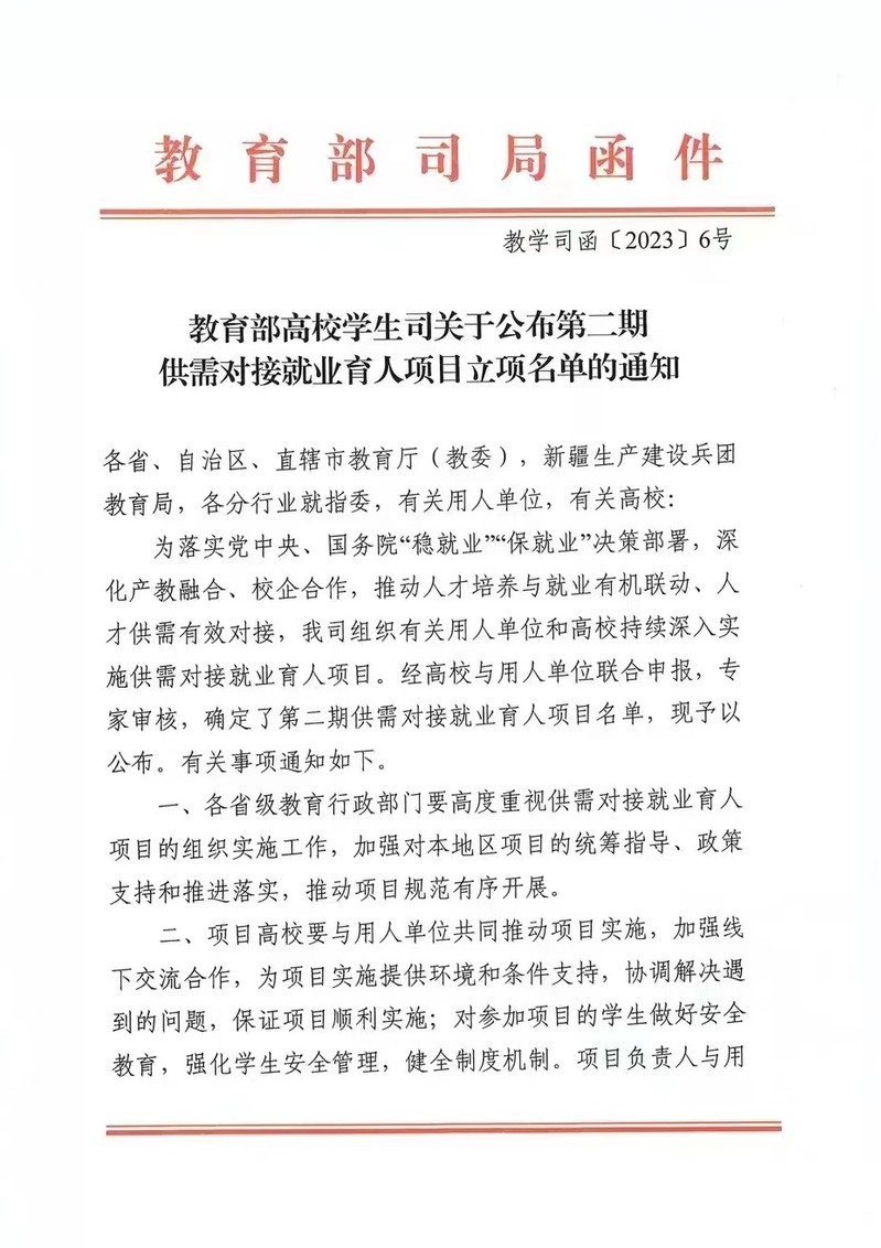 近日,教育部高校学生司印发《关于公布第二期供需对接就业育人项目立项名单的通知》,经高校申请、用人单位申报、专家审核、立项单位信息核查,确定了第二批供需对接就业育人项目名单,米粒av