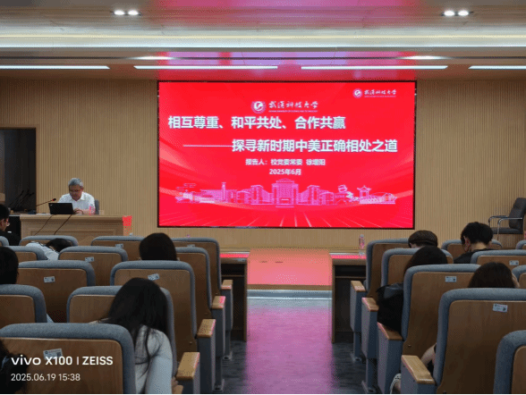 学术报告厅以《探寻新时期中美正确相处之道》为主题,为学院全体领导班子、师生代表讲授了一堂有深度、有温度、有情怀的专题思政课。