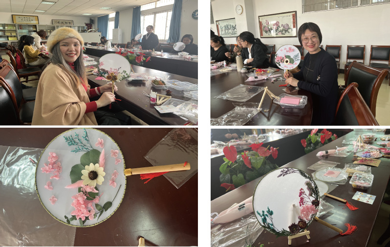 分工会、妇委会于教四楼41401会议室举办了“魅力女性 快乐巾帼”庆三八活动----永生花手工团扇制作。本次活动由学院分工会主席、妇委分会主任李桂珍主持,全院60%以上的职工参加了活动。